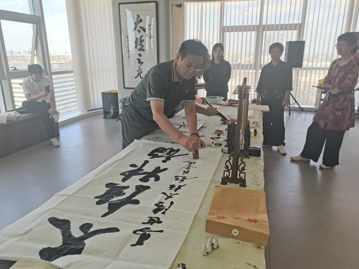 在参观结束后,王全一、宋文奎、张景迎等书画家们或挥毫泼墨,或凝神静气,他们的神态各异,却都流露出对太极拳与艺术的热爱与执着。