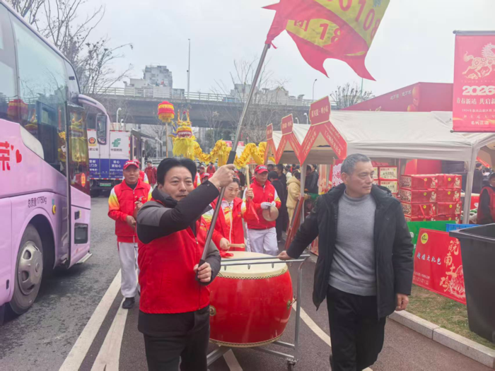 在活动现场,众多本地特色年货产品琳琅满目,让前来赶集的居民们大饱眼福。除了舞龙表演外,还有其他丰富多彩的文化节目,如歌舞表演、书法家写春联、变脸、猜谜语等,同时,派出所、交警队、医院等相关部门在现场开展了公益反诈骗、禁止酒后驾车、量血压、测血糖等公益活动,为市民提供便捷的服务。