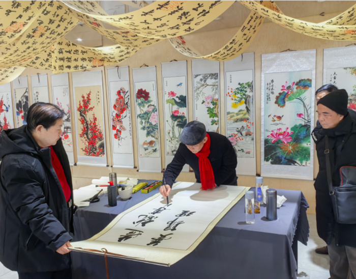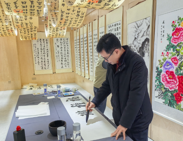 在笔会上,书画家们现场泼墨挥毫,展示了各自独特的艺术风格和精湛的技艺。他们的作品笔力遒劲,细腻入微,气势恢宏为现场观众带来了视觉上的享受。