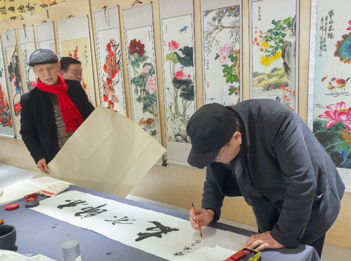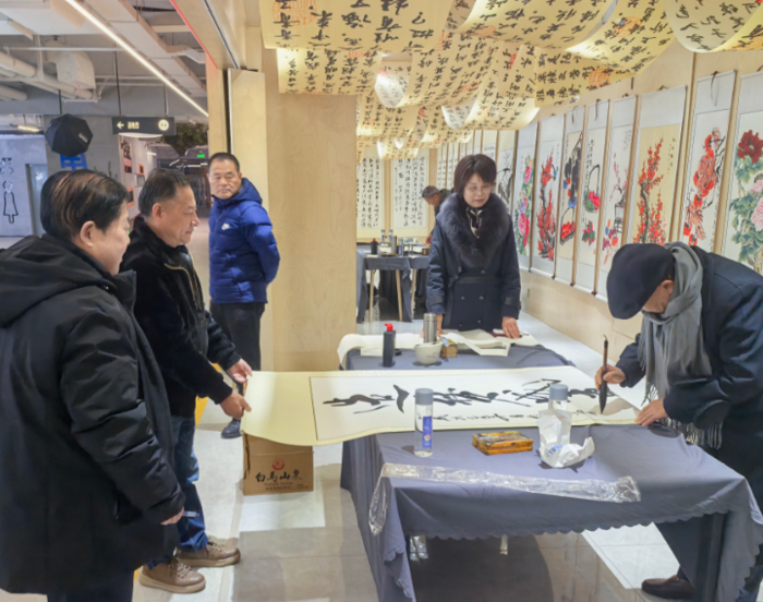 发表时间:2025-12-24 21:03 12月24日下午,在迎新春的喜庆氛围中,造梦书画院于合肥罍街地下负一层盛大举办了书画名家笔会。此次笔会不仅为书画爱好者带来了一场艺术盛宴,更是造梦书画院成立以来首次举办的邀请名家活动。 活动现场,书画界名流云集,包括宋文奎、徐善志、冯传信、权学友、朱明良、王玉海、李世金、洪清、倪萍、黄传峰等众多知名书画家。同时,安徽报道网副总编辑关民、执行总编辑赵晓彬、新华传播网总编辑滕斌等多家媒体人士也出席了此次活动。