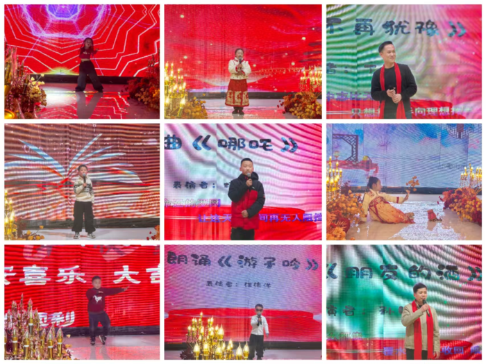 晚宴期间,大家的才艺表演也是精彩纷呈。杨沐夏小朋友的舞蹈《刀马刀马》充满活力,代昕瑶小朋友的朗诵《小小的我大大的梦》深情款款。丁赞带来的歌曲串烧《不再犹豫》《追梦人》,陈思锦的朗诵《历夜长歌》等节目赢得了观众的阵阵掌声。尤其是杨浩宇演绎的哪吒经典曲目,何晓嫣的舞蹈表演春和景明,以及何晨旭宇的舞蹈串烧(大展宏图,科目三)等节目,将现场气氛推向了顶点。江中的《千纸鹤》,邵宏兵的《爱拼才会赢》,孙世飞的歌曲《朋友的酒》等,每一首歌曲都让人回味无穷。